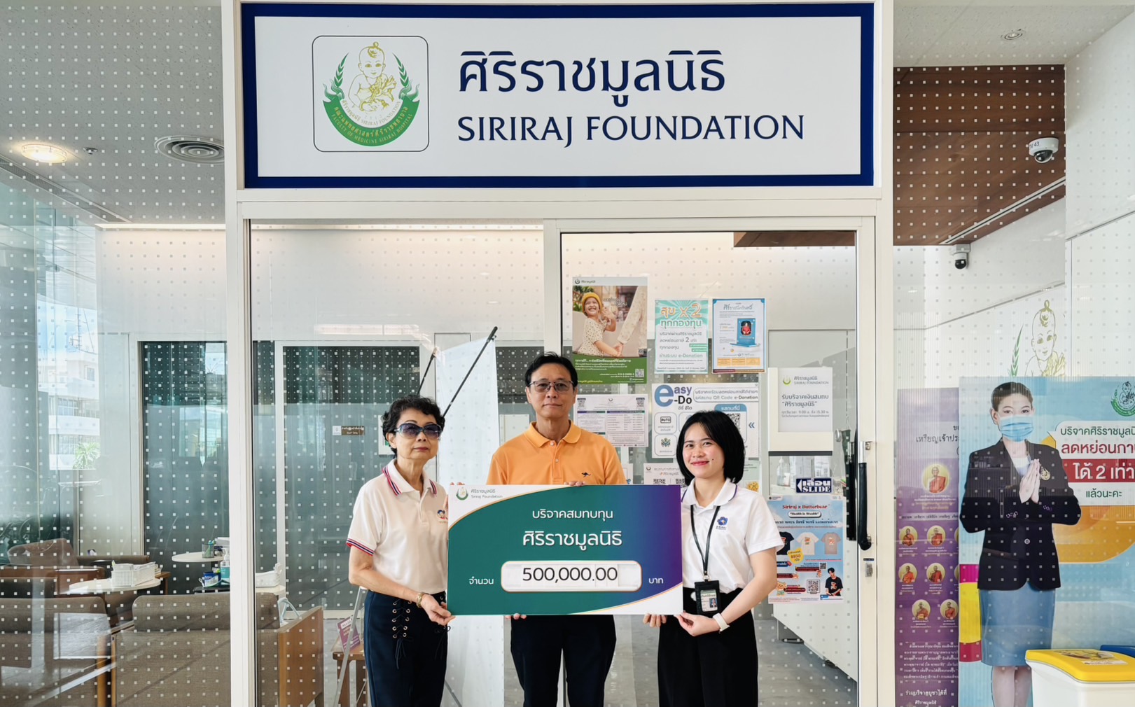 คุณโล่ว เซี่ยวกัง บุลสุข มอบเงินจำนวน 500,000 บาท สมทบกองทุน “ทุนธงวันมหิดล”, กองทุน “เพื่อผู้ป่วยโรคมะเร็ง รพ.ศิริราช ศิริราชมูลนิธิ”, กองทุน “เพื่อผู้ป่วยโรคหัวใจ รพ.ศิริราช ศิริราชมูลนิธิ” และกองทุน “เพื่อผู้ป่วยโรคไต รพ.ศิริราช ศิริราชมูลนิธิ” โดยมี คุณนรินทร์ลักษณ์ พันธ์ศรี เจ้าหน้าที่ฝ่ายรับบริจาค เป็นผู้แทนรับมอบ เมื่อวันศุกร์ที่ 5 กันยายน 2568 เวลา 13.00 น. ณ ศิริราชมูลนิธิ โรงพยาบาลศิริราชปิยมหาราชการุณย์ ชั้น 2